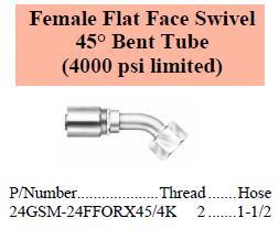 One Piece 45° Tube Female ORFS Swivel (4000psi limited)