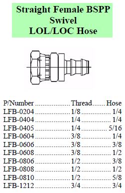 Lock-On Straight Female BSPP Swivel to suit LOL/LOC Hose