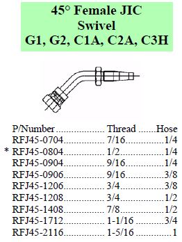 Field-attachable 45° Tube Female JIC Swivel to suit G1, G2, C3H Hose