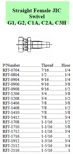Field-attachable Straight Female JIC Swivel to suit G1, G2, C3H Hose