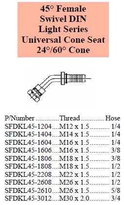 Super-Crimp S Series 45° Tube Female DIN Light Universal Cone Seat 24°/60° Cone Swivel
