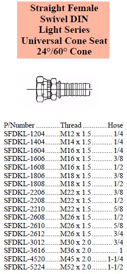 Super-Crimp S Series Straight Female DIN Light Universal Cone Seat 24°/60° Cone Swivel