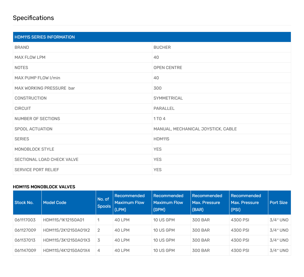 Series HDM directional control valves feature compact, cast monoblock bodies and have high operating pressure ratings.