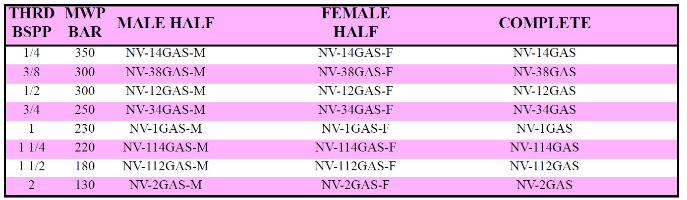 Valve Type: Interchangeable to ISO 7241-1 'A' Standards in 1/2". Connection by pulling back the sleeve. Disconnection by pulling back the female sleeve. Shut off by poppet valve. Connection under pressure not allowed. Disconnection under pressure not allowed. Interchangeability according to ISO 7241-1 Part A for 1/2" size only