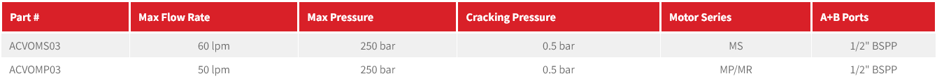 Hydraulic motor valve – anti-cavitation (rundown) check valve.