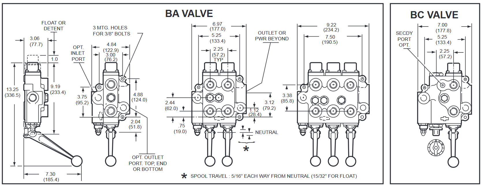 Optimum versatility is provided due to the many standard and optional features. Balanced spools are select-fit for minimum leakage and load holding checks prevent load drop when shifting.