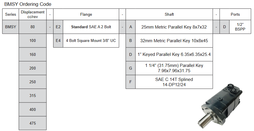 The BMSY Low Speed High Torque Geroler Motors are available with displacements from 80-475cc/rev.