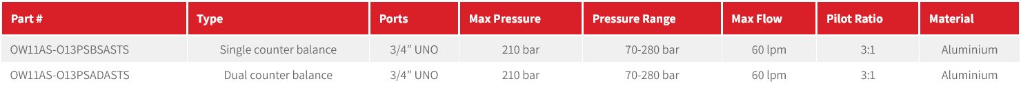 Single & dual counter balance valve internal vent, manufactured in Europe by Caproni.
