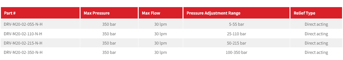 DRV-M20 Series Direct Acting Relief Cartridge M20