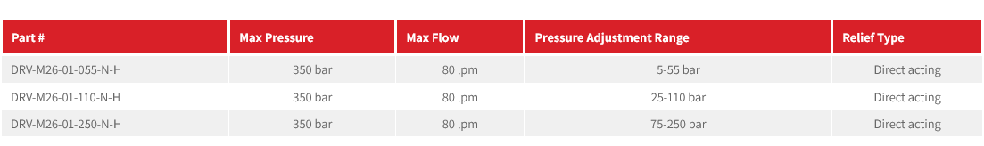 DRV-M26 Series Direct Acting Relief Cartridge M26