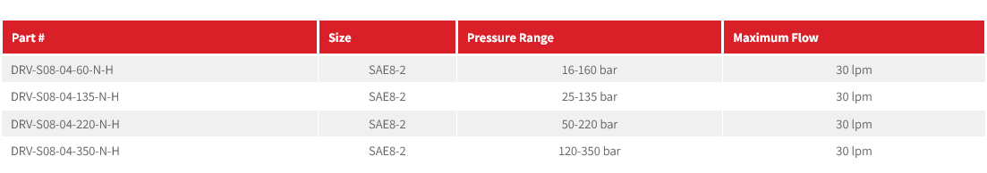 DRV-S08 Series Direct Acting Relief Cartridge SAE-08