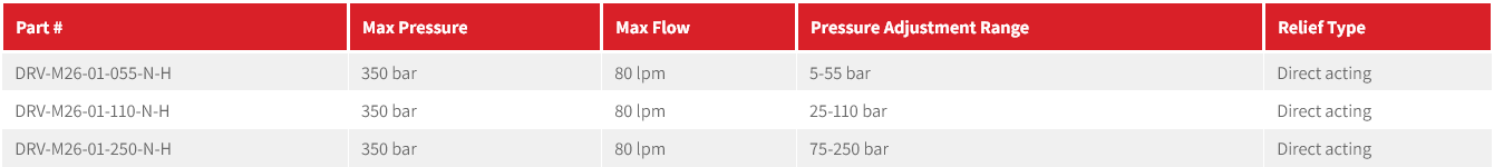 DRV Series Cartridge Relief Valve M26 Cavity