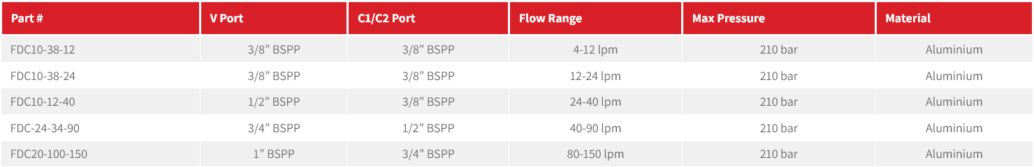 FDC Series cartridge flow divider and combiner, manufactured in Europe by Caproni.