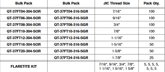 FlareTite Seals 316 Bulk Pack