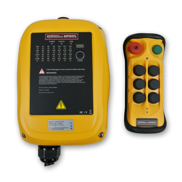 Flex ECO wireless radio remote pendant controllers. Field programmable via dip switches. All units are supplied with a rubber guard.
