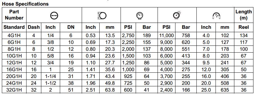 G1H Series 1 Wire Braid Hi-Temp Hose