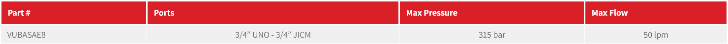 VUBA Series hose burst adaptor, manufactured in Italy by Oleoweb.