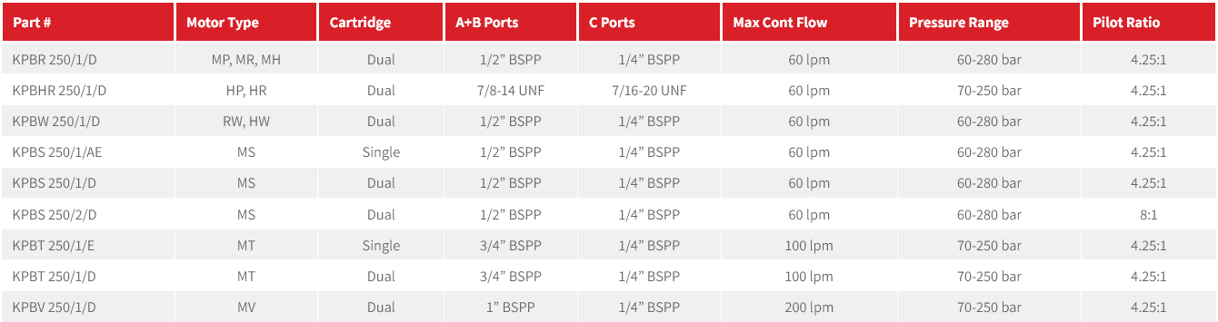 Hydraulic motor valve – KPB Series overcentre valve with brake release port.