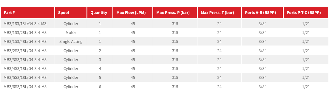MB3 monoblock valve, manufactured in Taiwan by Youli.