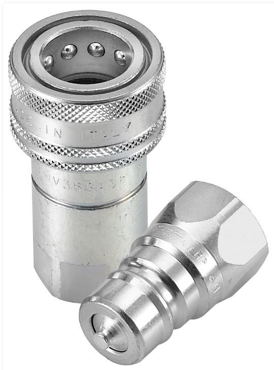 Ball Type: Interchangeable to ISO 7241-1 'A' Standards in 1/2". Features: Connection by pulling back the sleeve. Disconnection by pulling back the female sleeve. Shut off by poppet valve. Connection under pressure not allowed. Disconnection under pressure not allowed. Interchangeability according to ISO 7241-1 Part A for 1/2" size only.