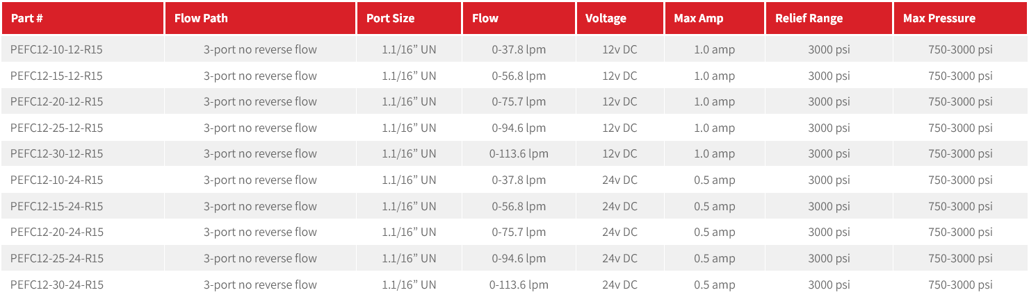 PEFC Series Electronically Adjustable Proportional Pressure Compensated Flow Control Valve w/ Relief Valve
