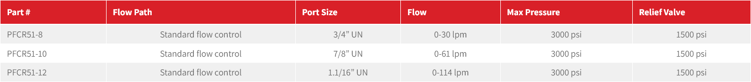 PFCR Series pressure compensated priority flow control with relief, manufactured in USA by Brand Hydraulics.