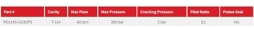 PO11AS Series Pilot Check Valve Internal Pilot T-11A Cartridge Valve