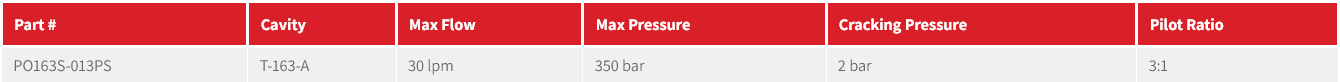 PO163S Series Pilot Check Valve Internal Pilot T-163-A Cartridge Valves