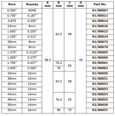 For connecting hydraulic orbit motors to fabricated winch drums and mixer paddles, electric motorn sprocket hubs and machine bosses. Manufactured from mild steel for ease of welding. Bore tolerances +0.03mm +0.06mm. Machined outside dimension “C” has tolerance of +0.02mm +0.05mm. Finish is black Colorsa.