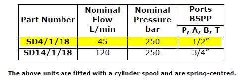 Compact design. Single spool for open and closed centre circuits. Fitted with main pressure relief. Ø16mm interchangeable spools.