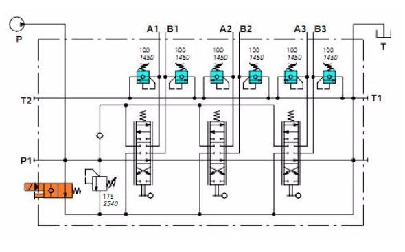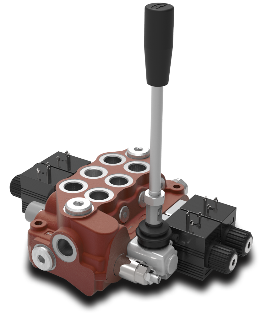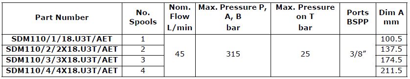These directional control valves are the same as the SD5 series except they have the provision for the fitment of port reliefs & anti-cavitation checks. They have a relief valve and load hold check valve on the spool pressure line and the provision for a high pressure carry over port. An unloader solenoid is also available as an option. Also available in 5 or 6 sections on request.