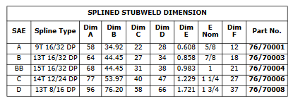 Ideal for use with precision splined hubs for manufacturing of M & F couplings. Stubwelds may also be used for replacing splined ends of worn shafts or manufacturing splined ends on shafts for new equipment.