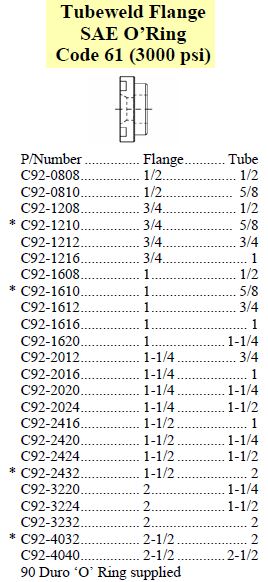 Tubeweld Flange SAE O-Ring Code 61