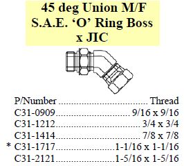 45° Union M/F SAE O-Ring Boss x JIC