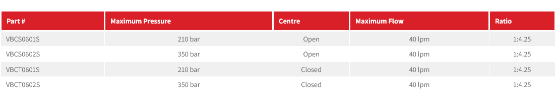 VBC Series Cetop 3 Counterbalance Modular Valves