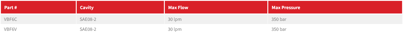 VBF Series bidirectional flow control cartridge valve.