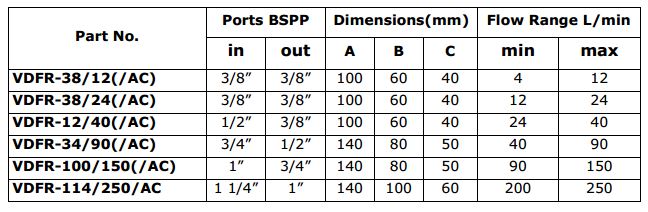 Three port pressure compensated flow divider valve, designed to split the flow 50/50 to two circuits from a single pump. Aluminium body maximum pressure = 210 bar Steel body maximum pressure = 350 bar (add suffix AC) Other split ratios are available on request