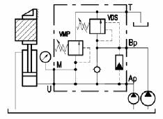 VEP Series- These valves are utilised in two pump systems to provide a HIGH-LOW (fast-slow) operation. Fast speed is obtained by utilising both pumps to feed the circuit up to the setting of the bypass valve (VDS on port BP). Slow speed is then available to feed the circuit up to the pressure setting of the master relief valve (VMP on port AP). NB: Port AP uses spring options TS & TR, Port BP uses TB & TV Aluminium body - Steel bodied units available on request - add suffix AC