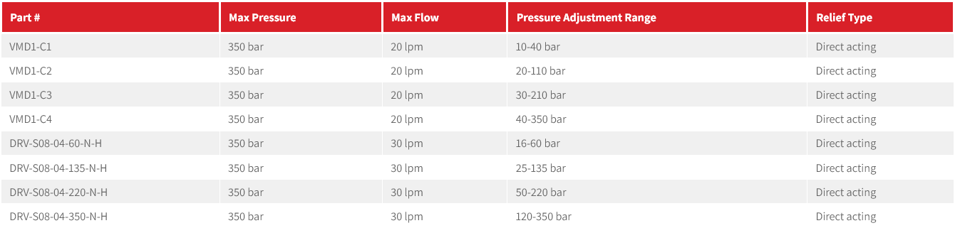 VMD/DRV Series Cartridge Relief Valve SAE 08-2 Cavity