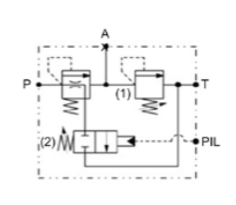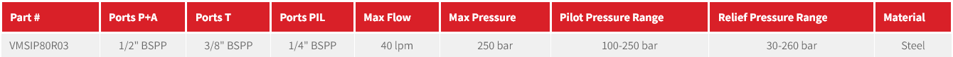 VMSIP Series pilot operated unloading valve, manufactured in Italy.