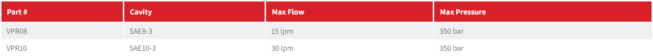 VPR Series Single Acting Pilot Operated Check Valve Cartridge