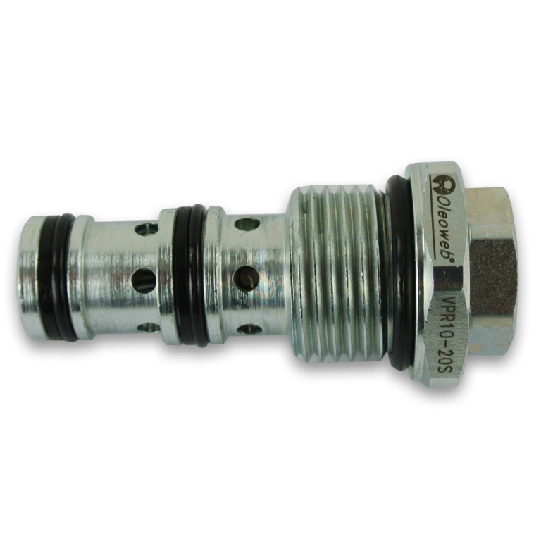 VPR Series single acting pilot operated check valve cartridge, manufactured in Italy by Oleoweb.