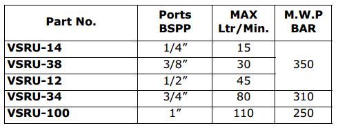 VSRU Series flow control non compensated with reverse flow check. Ports: 1/4" BSPP to 1" BSPP
